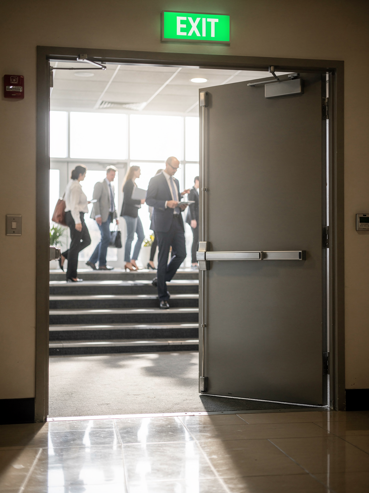 But emergencies aren't limited to fires. Active shooter situations, chemical releases, gas leaks—none of these trigger fire alarms. The door stays locked.